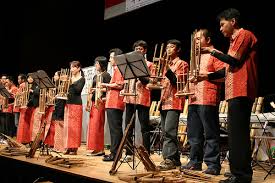 ※アンクルン=インドネシア西ジャワ州バンドゥン発祥とされる竹楽器。オクターブ違いの二本の竹を一組とし、揺すって竹と竹をぶつけ音を出す。音程は竹の長さ・太さで異なりハンドベルのように各人が各音程を受け持ち演奏する。