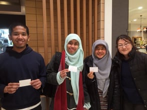 留学生に奨学金にするための寄付を手渡しました。賛助会員に感謝のメッセージを書いてもらいました。