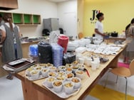 福岡大学ベンチャー企業論でハラルビジネスの推進を目指す福岡大学エナックプロジェクトがハラルに対応した日本食の試食会を開催しました。インドネシア人ムスリマたちがモニターとして参加しました。