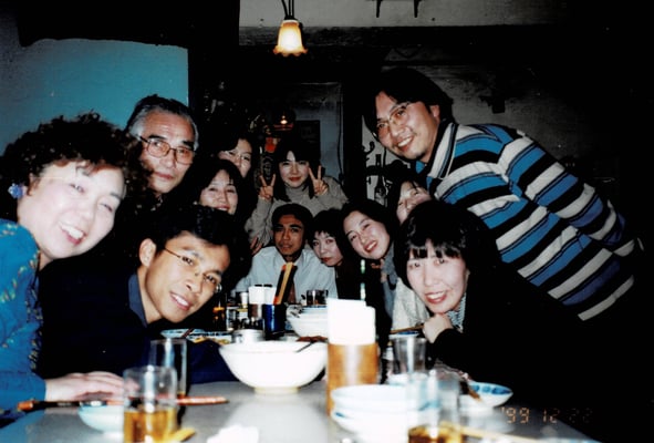前年度のインドネシア語クラスの受講者たちで、「アパアパ研究会」(代表:弥栄睦子)を設立し、Arif Nur Hakimさん、Rahman Hidayatさんから引き続きインドネシア語を習いました。留学生からの誘いで、当時、香椎浜にあった九州大学留学生会館へ度々行くようになり、留学生や技能実習生たちと仲良くなりました。