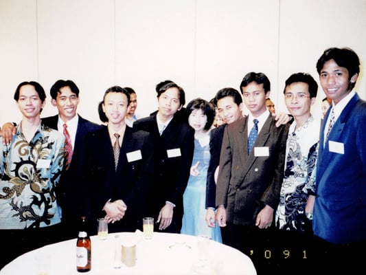 福岡国際交流協会主催(現・福岡よかトピア国際交流財団)「留学生から学ぶ外国語教室・インドネシア語初級クラス」で、Arief Sartonoさん、Arif Nur Hakimさんよりインドネシア語を習いました。NPO法人トゥマンハティふくおかの理事はこの時の受講者が中心です。